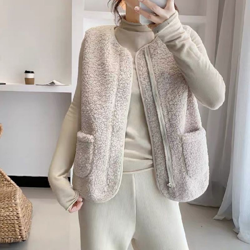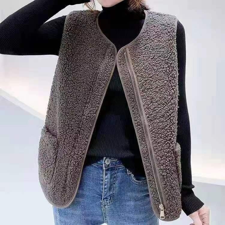 冬日暖護鎧,時尚不設限! 女性拉鏈款羊羔絨馬甲,蓬鬆絨感裹住暖意,利落拉鏈點亮造型,內搭外穿都出彩,低溫也能靚出圈!